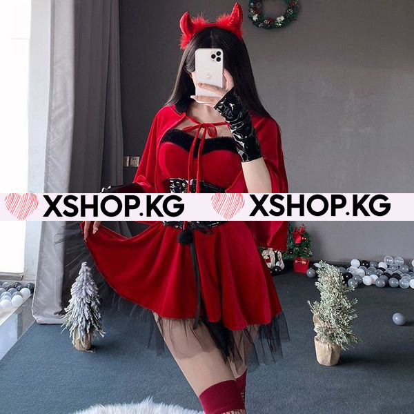 Рождественское секси-платье декольте Чертенок с рожками R47